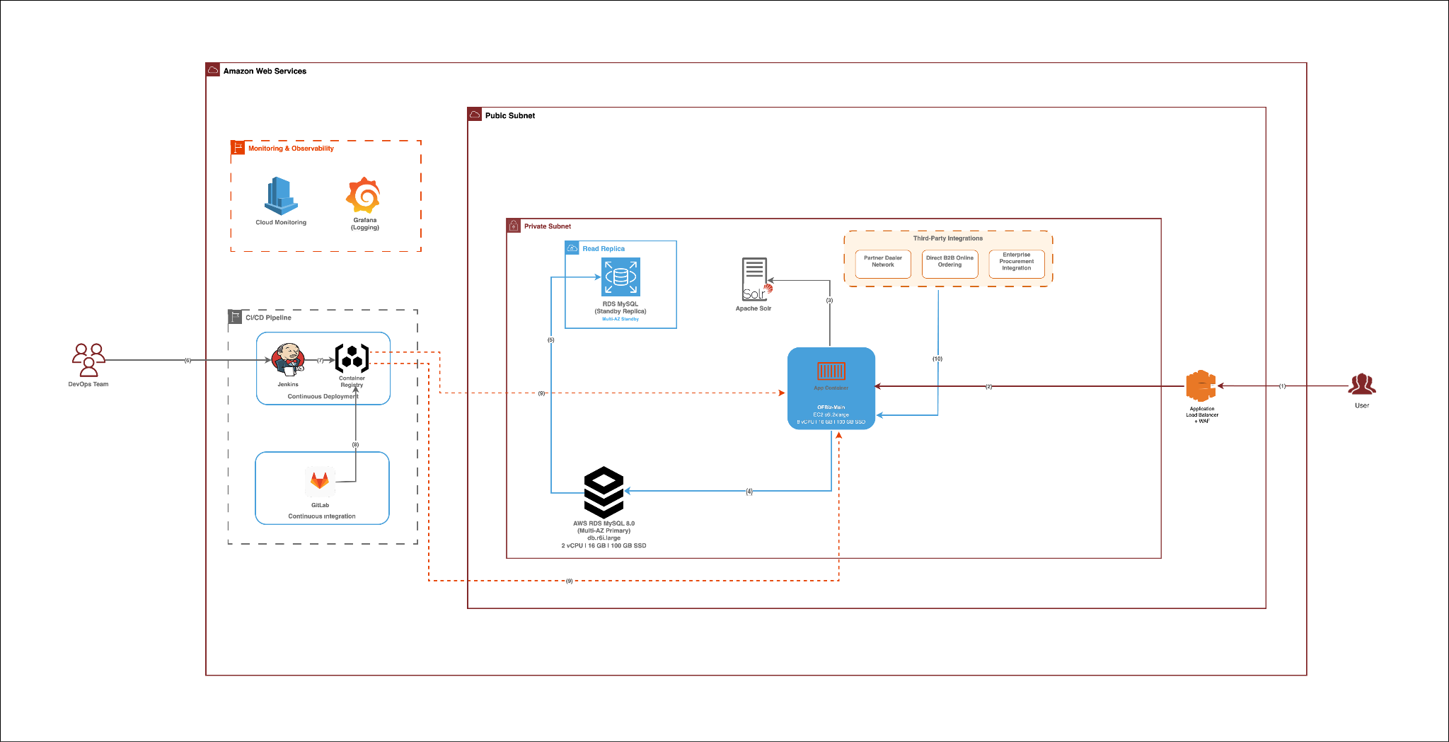 The deployment architecture proposed for this B2B industrial equipment manufacturer demonstrates how structured discovery and operational analysis translate into production-ready deployment decisions for a 300 orders-per-day operation.