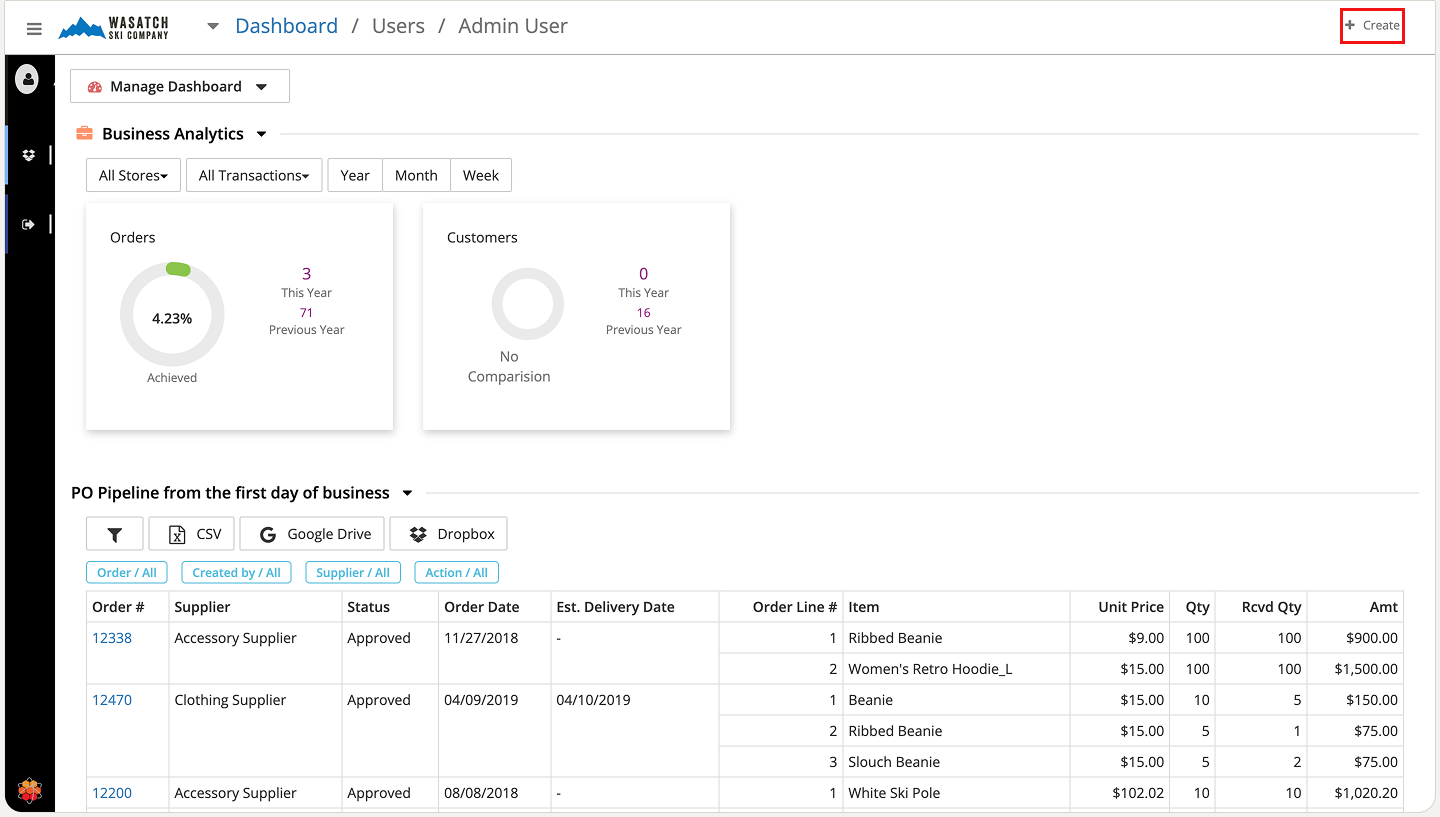 Once the order has been finalised, click on + Create in the top right corner of the screen.