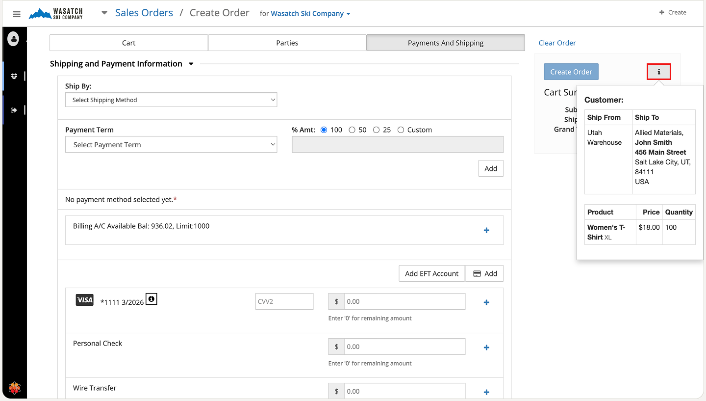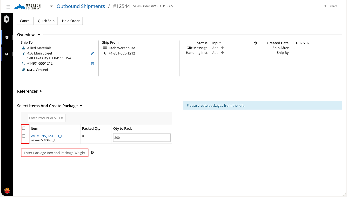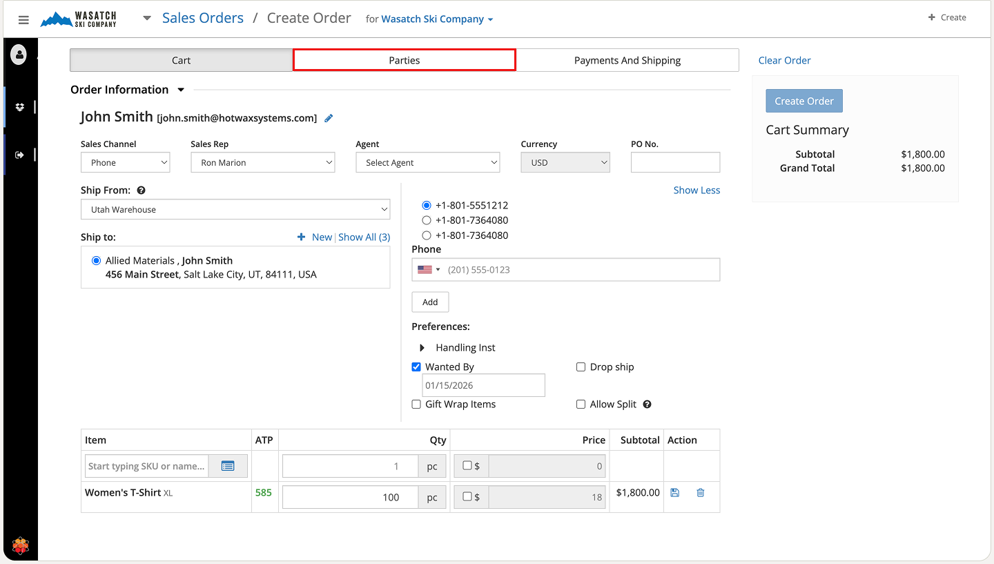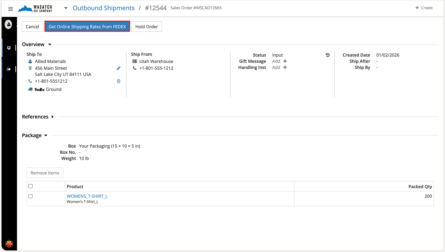Once all details are confirmed, click Create Order. The order status advances, and now the sales order is ready for fulfillment processing.