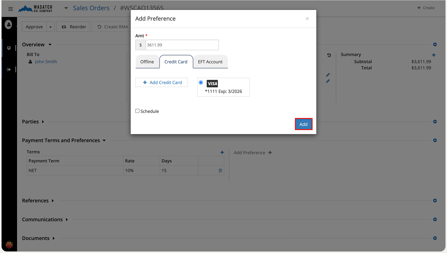 In the pop-up, choose the customer's preferred payment method and click Add.