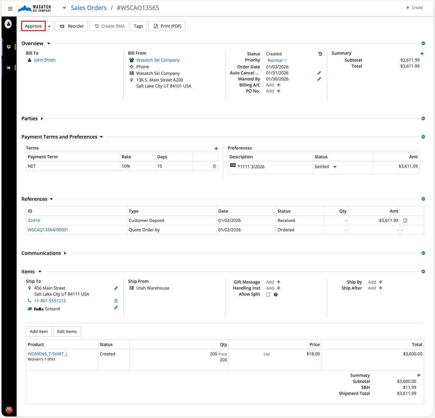Let’s continue from the approved sales order and walk through the fulfillment workflow.