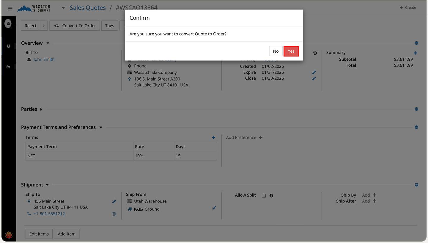 Let’s walk through the complete workflow for creating and converting a sales quote into a sales order.