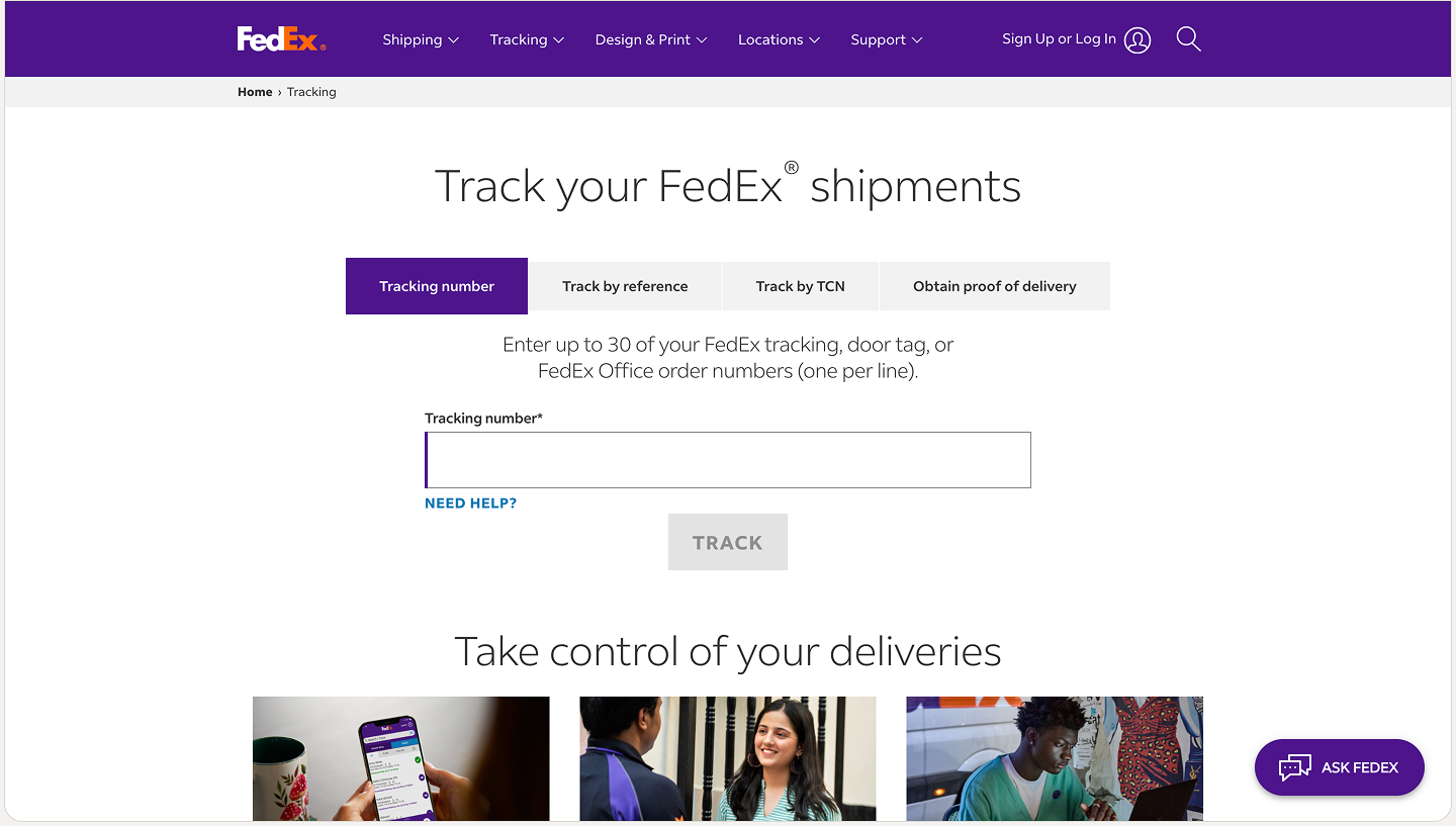 (FedEx Shipment Tracking Page, reached via clicking the Tracking Code)