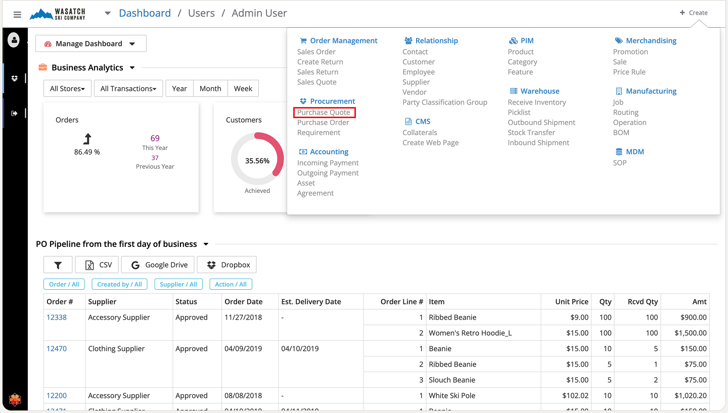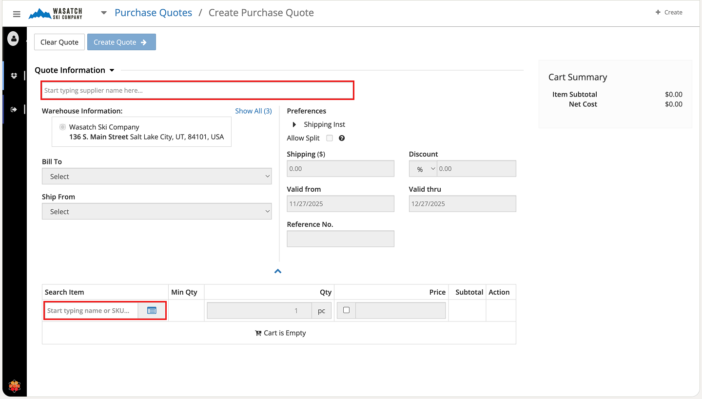 You can also create a purchase order directly, without starting from a purchase quote. The steps below show how to do this.