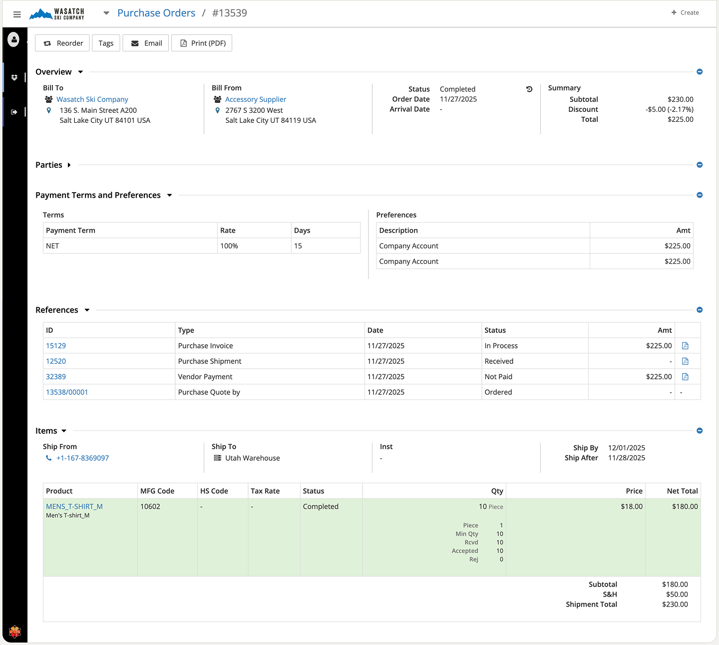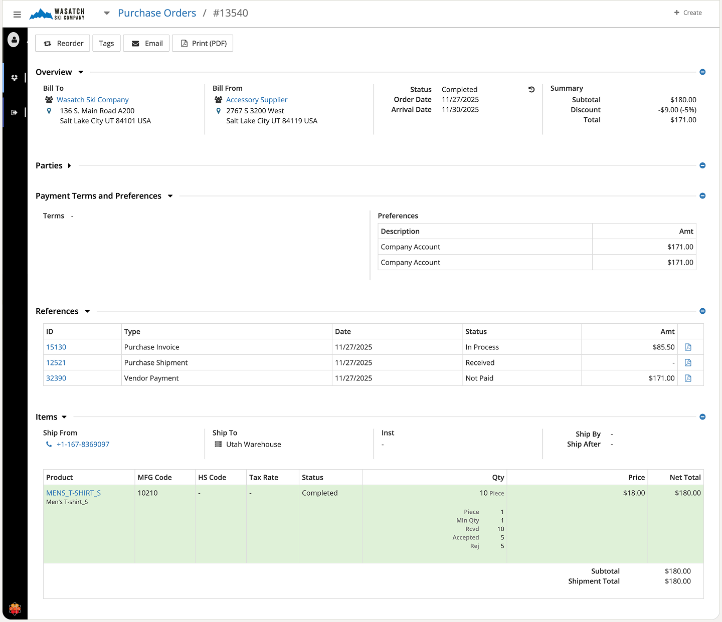 Once a receipt is finalized, inventory is updated automatically, and the associated PO progresses toward completion based on how many quantities were received. This creates a reliable, traceable flow from supplier delivery to warehouse stock, keeping procurement and inventory aligned throughout the process.