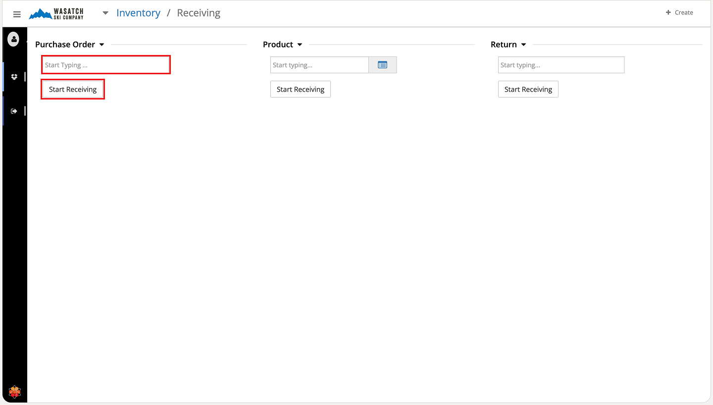 Select Receive Inventory under the Warehouse section.